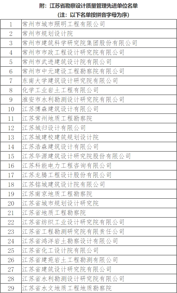 附:江蘇省勘察設計質量管理先進單位名單