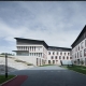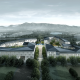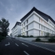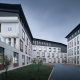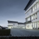 江蘇省農科院科技園高踞寧杭公路以南,向北遙望紫金山,向南俯瞰農科院種植園。項目包含辦公配套服務和實驗樓三個部分,總體規劃營造“鐘山龍蟠山外山,疊院花田園中園”的意境。位于東南角的實驗樓屬于項目一期,場地東南低西北高,高差達12米。總體布局順應地勢,采用兩個L形圍合成的院落,在三個不同標高分別于場地產生聯系,二層向西北中央廣場打開,首層圍合院落并以臺階聯系負一層南側道路,從而形成“疊合”的院落。結合地形高差在建筑首層、二層和負一層都設置有入口門廳,并利用內院景觀步道和形體偏轉實現對人流的引導。負一層的車庫入口利用高差直接與南側道路平接。在三層和四層較高的樓層結合景觀和形體布置空中庭院,為科研工作者提供看山觀景的休憩空間。建筑形體順應地形高差的蜿蜒起伏,利用格柵屋面連成一體,架空部分布置設備平臺。立面材質呼應農科院既有建筑,墻面采用淺灰色面磚和暗紅色面磚點綴,窗框暗紅色,深灰色金屬折板屋面。朝向外側采用豎條窗,形成韻律,朝向內院采用落地窗,適合觀景。位于層間的水平種植槽為農科院豐富的作物種類提供了立面栽培的可能性,體現農業科學的特色。